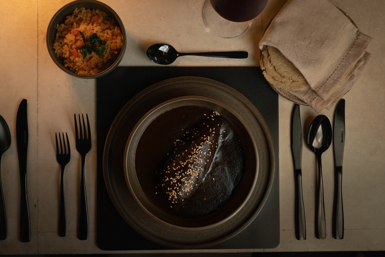 Pechuga Con Mole del Convento y Arroz Rojo